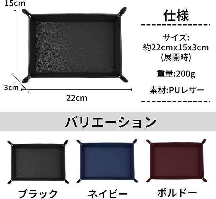 「仕様」サイズ:約22cmx15x3cm(展開時)、重量:200g、素材:PUレザー(合成皮革)、カラー:ブラック/ブルー/ボルドー
