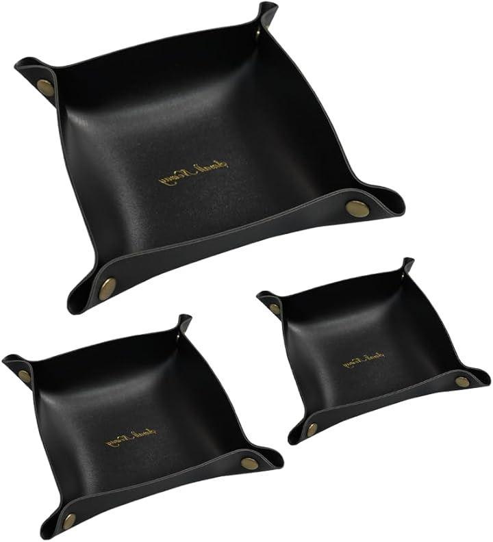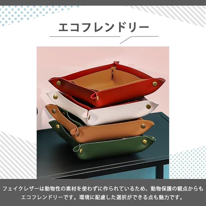 「高級感のあるレザートレイ」見た目に高級感があり、インテリアに上品さを加えるフェイクレザーの小物入れです。