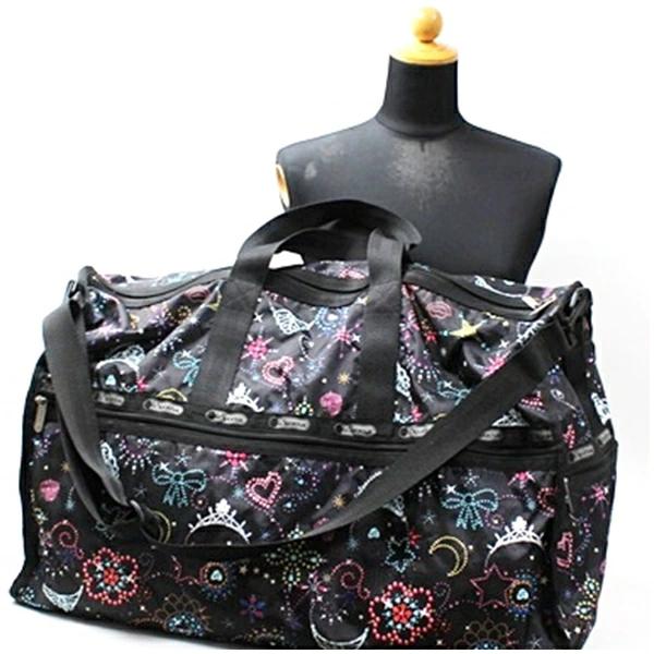 | 商品名 | レスポートサック 2WAY ボストンバッグ ポーチ付き ナイロン斜め掛け ブラック ×マルチカラー 中古 ABランク LeSportsac |