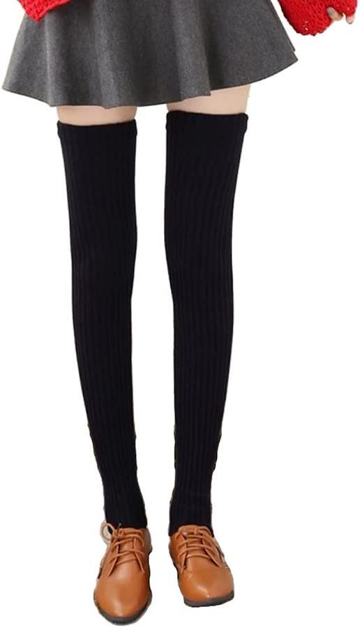 リブ編みが縦長ラインを強調して細く見え、脚長効果のレディース防寒レッグウォーマー。