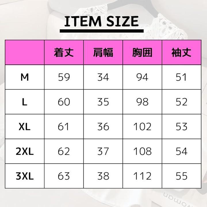 「SIZE:3XL」 着丈:63cm、肩幅:38cm、胸囲:112cm、袖丈:55cm