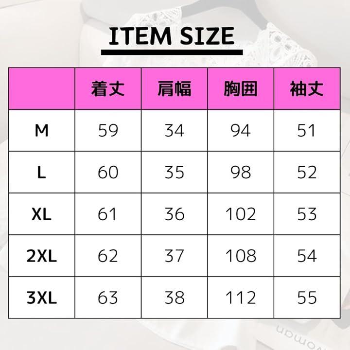着丈:62cm、肩幅:37cm、胸囲:108cm、袖丈:54cm