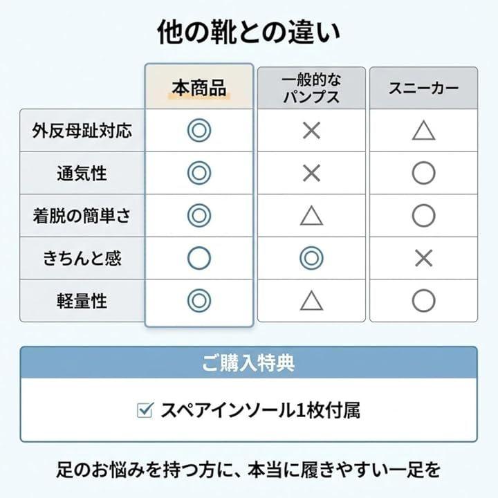 さらに交換用インソールが1枚付属しているため、長く使用したい方にも使いやすい構成です。
