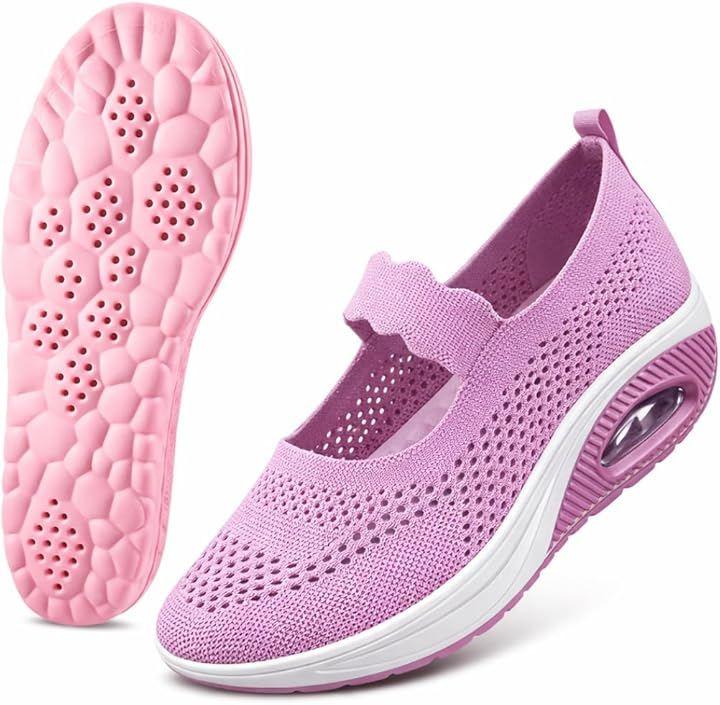 レディース ウォーキングシューズ エアクッション メッシュ 通気 軽量 スリッポン 幅広 衝撃吸収 ナースシューズ 散歩 立ち仕事 交換用中敷き付き