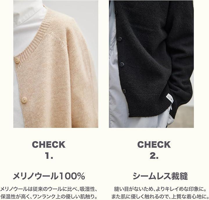 「高品質のメリノウール100%」メリノウール100%カーディガンはウールの中では高級な一品と評価されています。