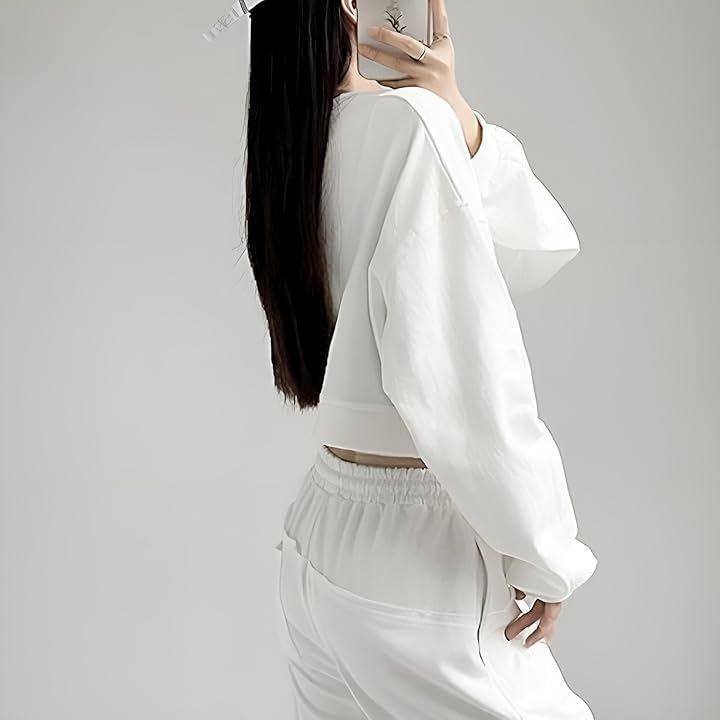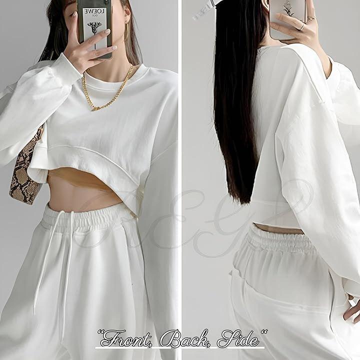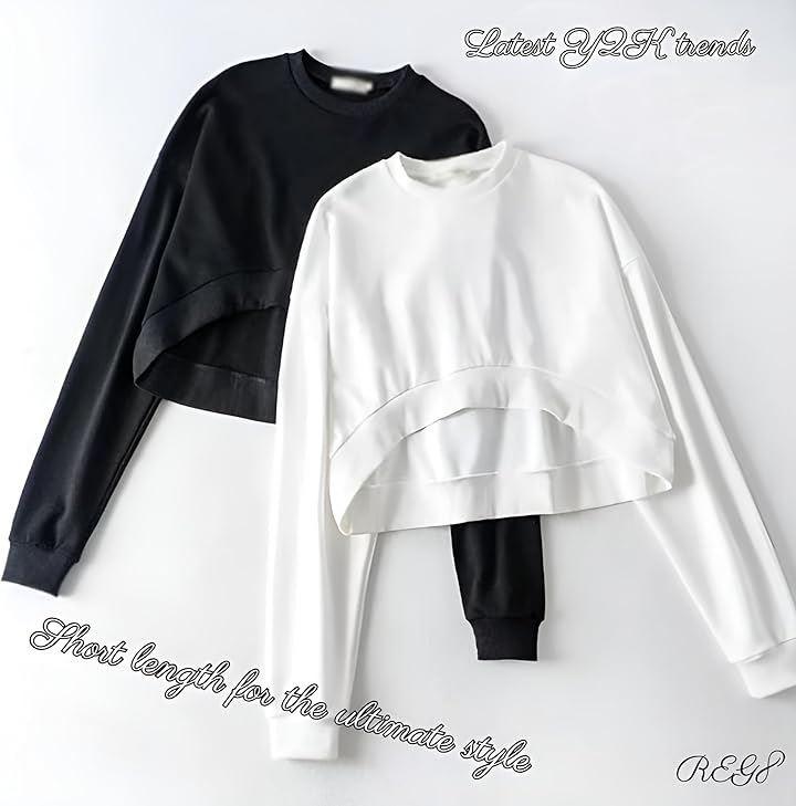 *トレンドのクロップド丈xラウンドネック シンプルでありながらも、トレンド感のあるハイウエスト&クロップド丈のシルエットがポイントで、自然とスタイルアップ効果を演出します