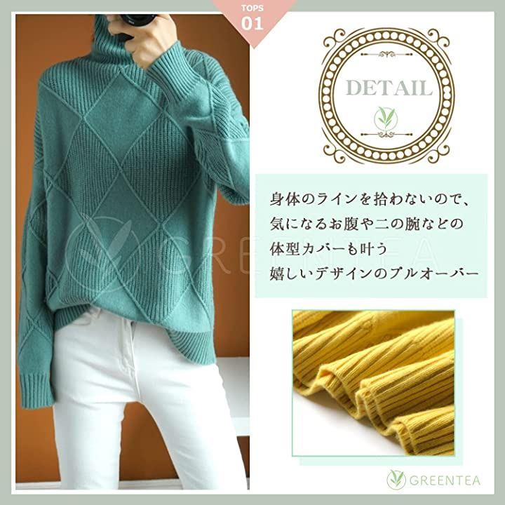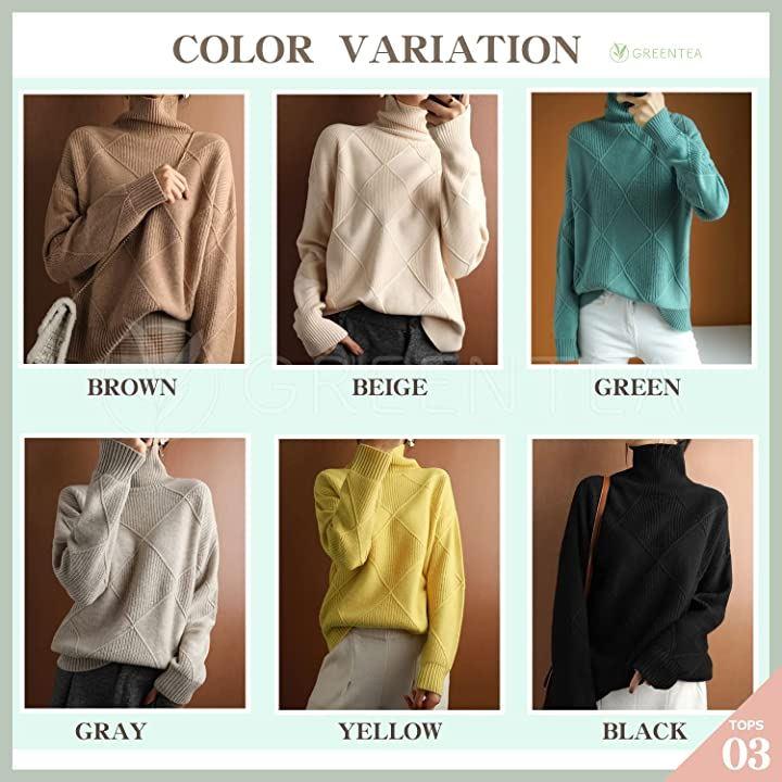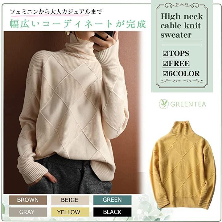 ハイネックで冬場でも暖かいのはもちろん、インナーの差し色としても可愛いですね。