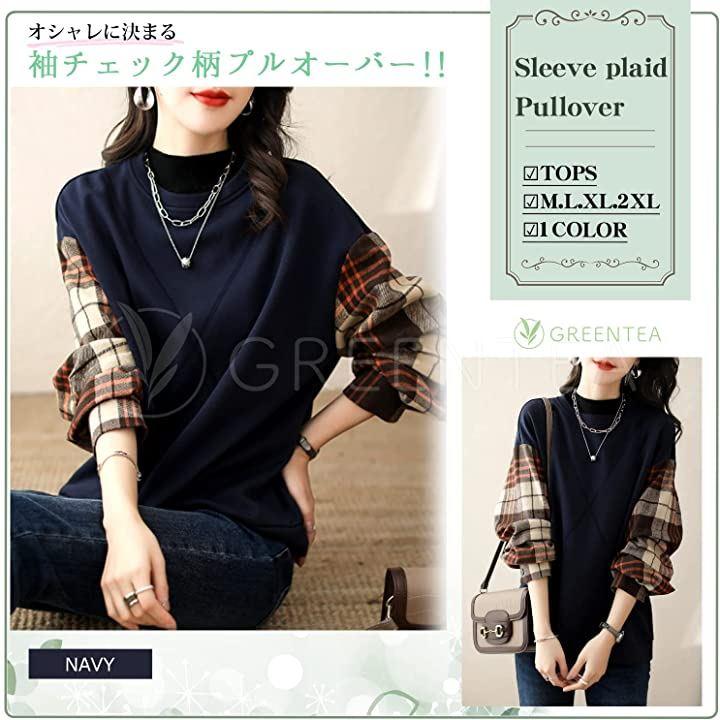 紺色トレーナーとブラウンチェックシャツのドッキングデザインになります。