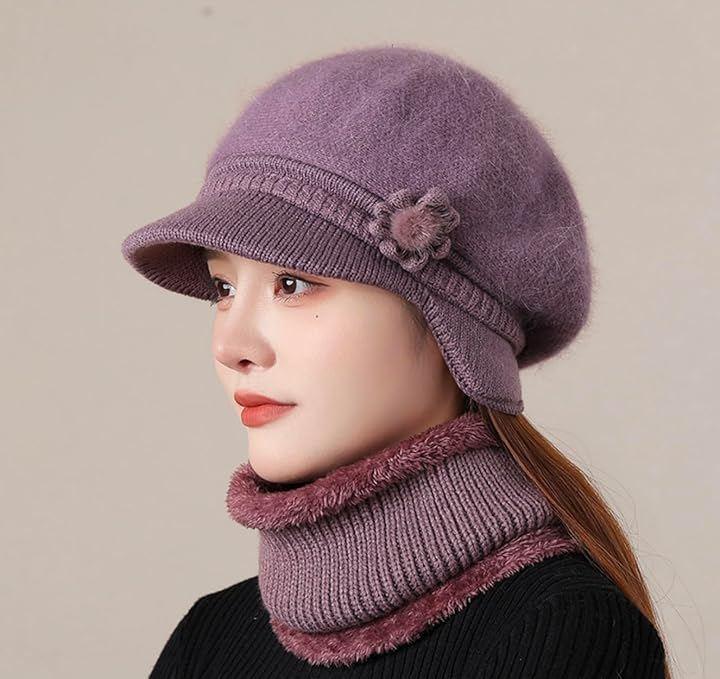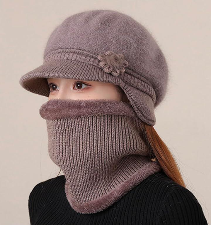 「デザイン」あったかいふわふわ帽子とマフラーのおしゃれな防寒マストアイテム(裏ボア付き)・折りたためるから持ち運び、外出先で便利・シンプル無地でワンポイントデザイン・家族への誕生日や記念日のプレゼント、ギフトにおすすめ