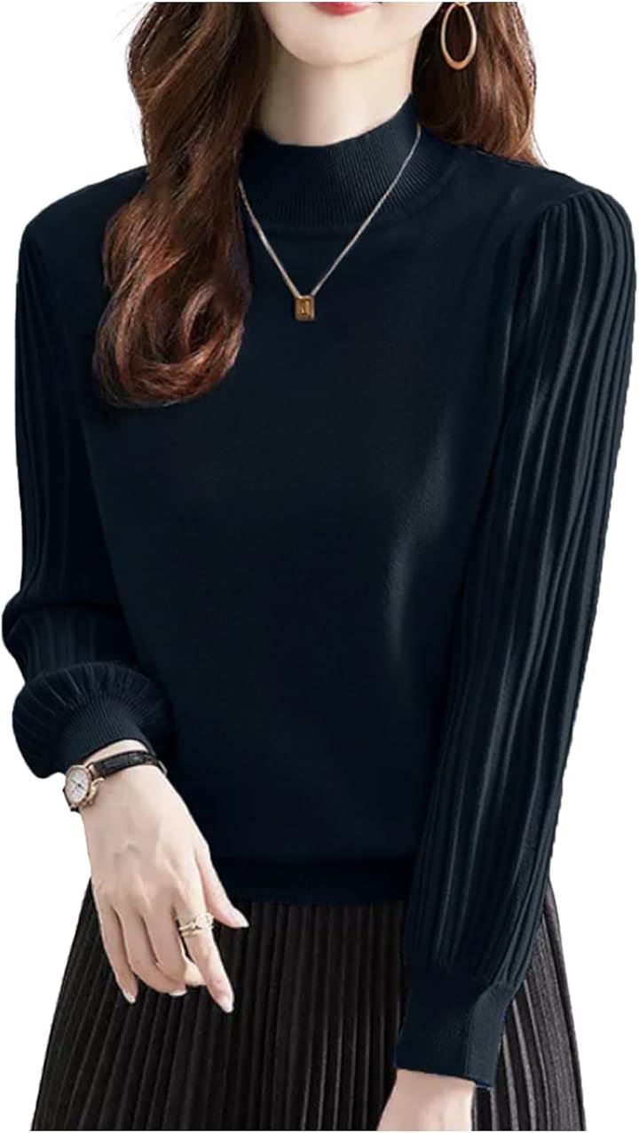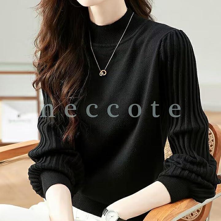 レディース ニット セーター カットソー ハイネック ボリュームスリーブ リブ フォーマル プルオーバー