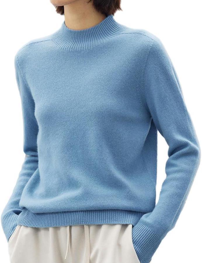 また繊維が細いので、伸縮性があり、身体にフィットしつつも締め付け感がなく、とても優れたハイネックニットとなっています。