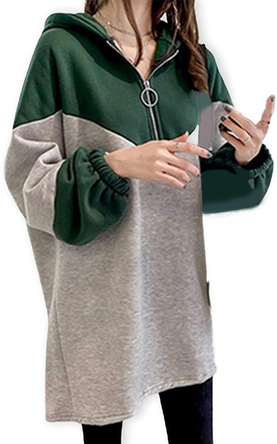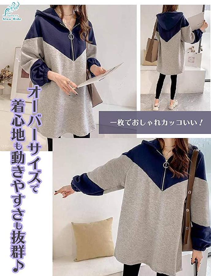 フードも付いた秋にぴったりカジュアルなデザイン、大きいサイズでゆったりとしたシルエット・オーバーサイズで着心地も動きやすさも抜群・薄手の素材を使っているので、上品なだけでなく着やすさももちろんグッド・またトップからボトムにかけてのベーシックなナチュラル感漂うシルエットがバツグンの着痩せ効果を発揮してくれます・そのため、お腹周りや二の腕周り、といった、上半身太りが気になる方でも、しっかりとさりげなく体型をカバーしてくれます。