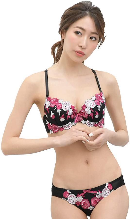 ・ブラジャー、ショーツ共に大胆に施された刺繍は着るだけで女性らしさをグッと引き出してくれるデザインとなっております。