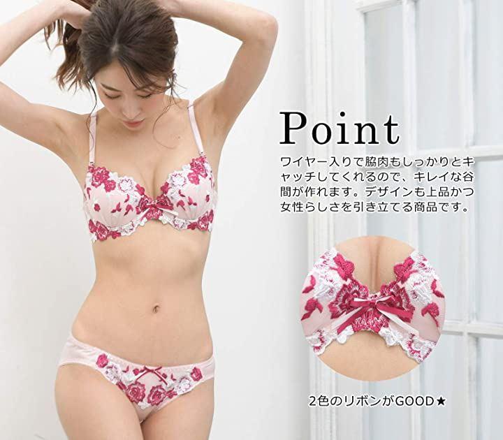 ・大柄の刺繍がかわいいブラ&ショーツセットになります。
