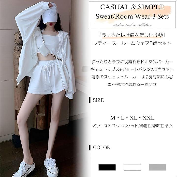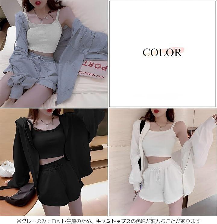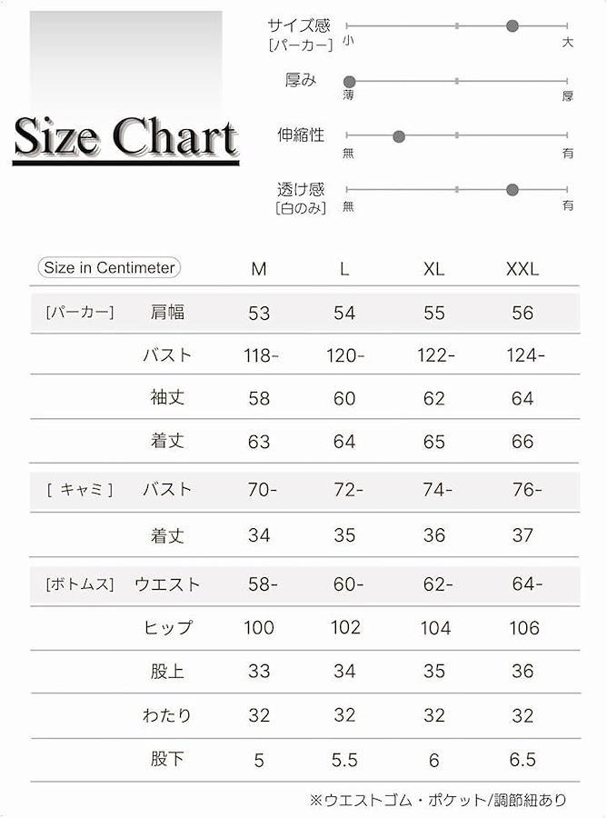 「カラー」グレー・白 「サイズ」M・L・XL・XXL * [パーカー] ポケットあり・[キャミソール] 伸縮性あり・[ボトムス] ウエストゴム・調節紐/ポケットあり