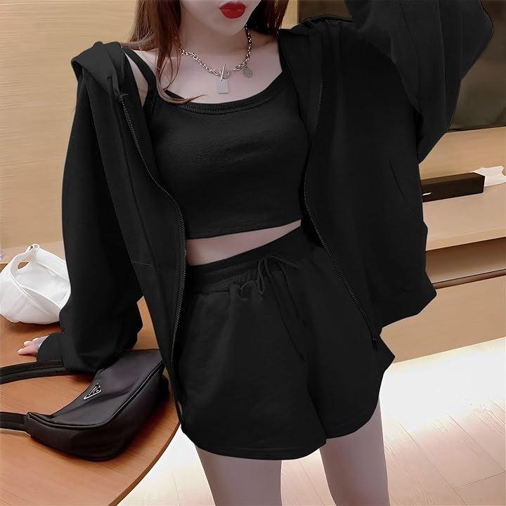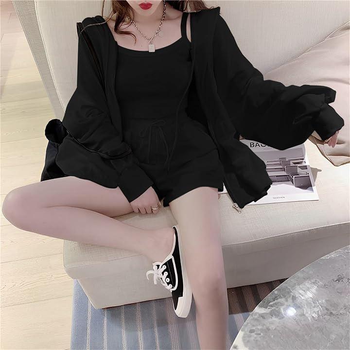 トップスにはショート丈のキャミソールと動きやすいショートパンツ。