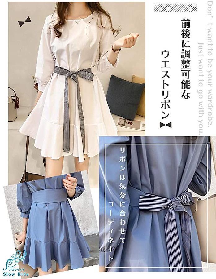 前後に調整可能なウエスト部のリボン (紐)デザインもおしゃれカッコいいポイントです・