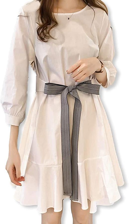 ・春夏秋冬ロングシーズンで大活躍のミドル丈ちょう結びドレスワンピース*春~秋にかけては気候や気温に合わせて、 カーディガンやセーター、ジャケットやブルゾンといったトップスと組み合わせることで、季節に合わせたオトナのコーディネートを 楽しむことができます。