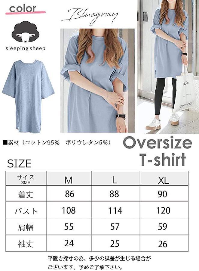 [サイズ]M・L・XL [寸法]M (日本サイズS-M) :バスト118cm 着丈85cm 袖丈23cm 肩幅58cm 袖口21cm アームホール23cm 裾幅116cm L (日本サイズM-L) :バスト124cm 着丈86cm 袖丈24cm 肩幅59cm 袖口22cm アームホール24cm 裾幅124cm XL(日本サイズXL-2XL):バスト132cm 着丈87cm 袖丈25cm 肩幅62cm 袖口23cm アームホール25cm 裾幅128cm [カラー]:ブラック・ホワイト・ピンク・ラテ・ブルーグレー [組成]コットン95% ポリウレタン5% [生産国]中国製