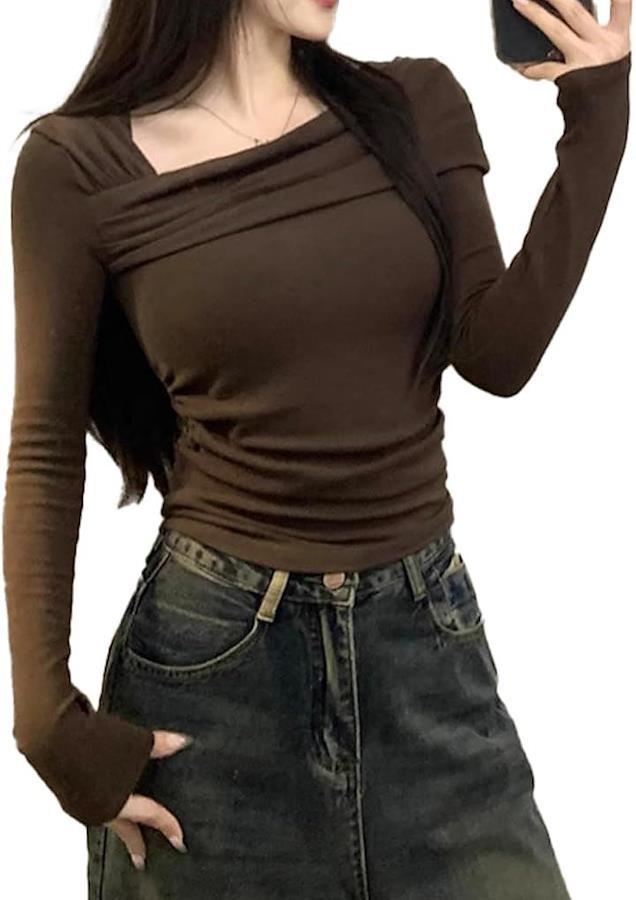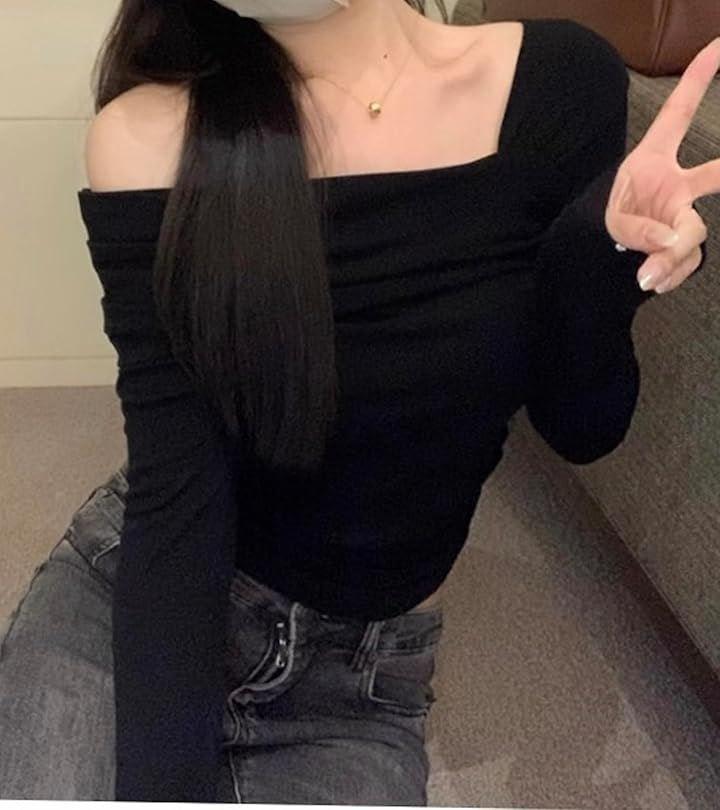 肩を大胆に魅せるオフショルダーと、長袖のシルエットが大人の魅力をプラス。