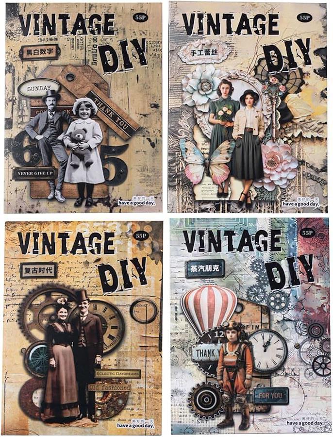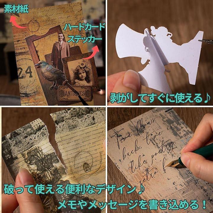 手帳やノート、アルバムを彩るのに最適な、レトロで味わい深い紙ものコラージュ素材の4種セットです。