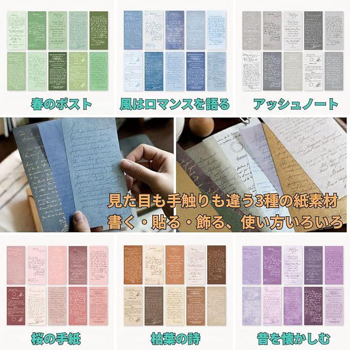 異なる色合いと書体のペーパーが、あなたのクリエイティブな作品に物語性を加えます。