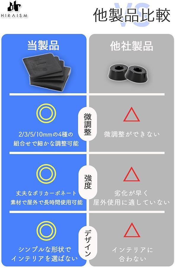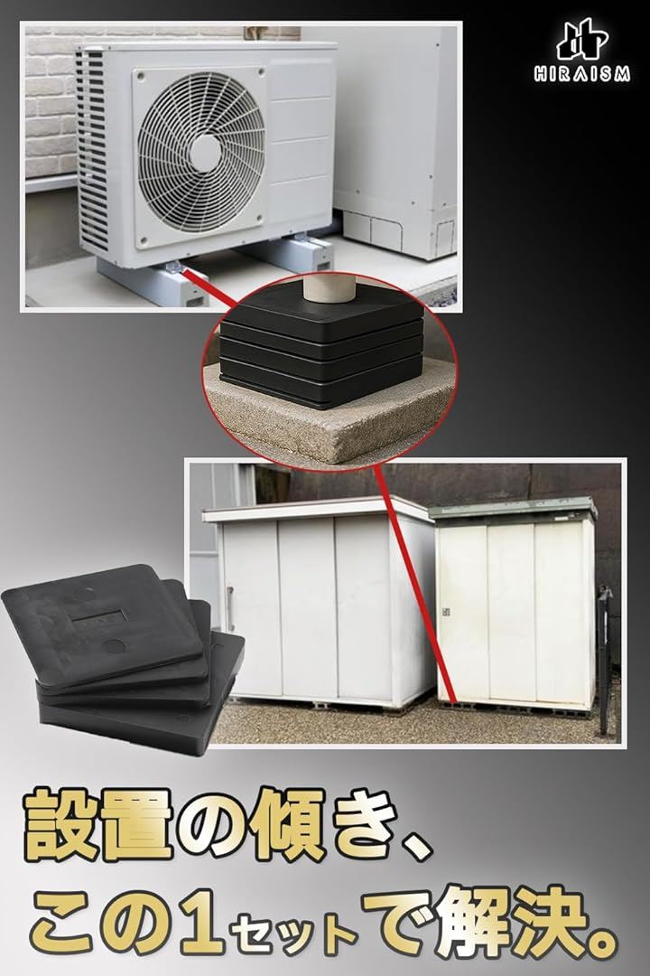 濡れや湿気、耐熱性も高いため、屋外のエアコン室外機設置や物置の水平をとるのにも。