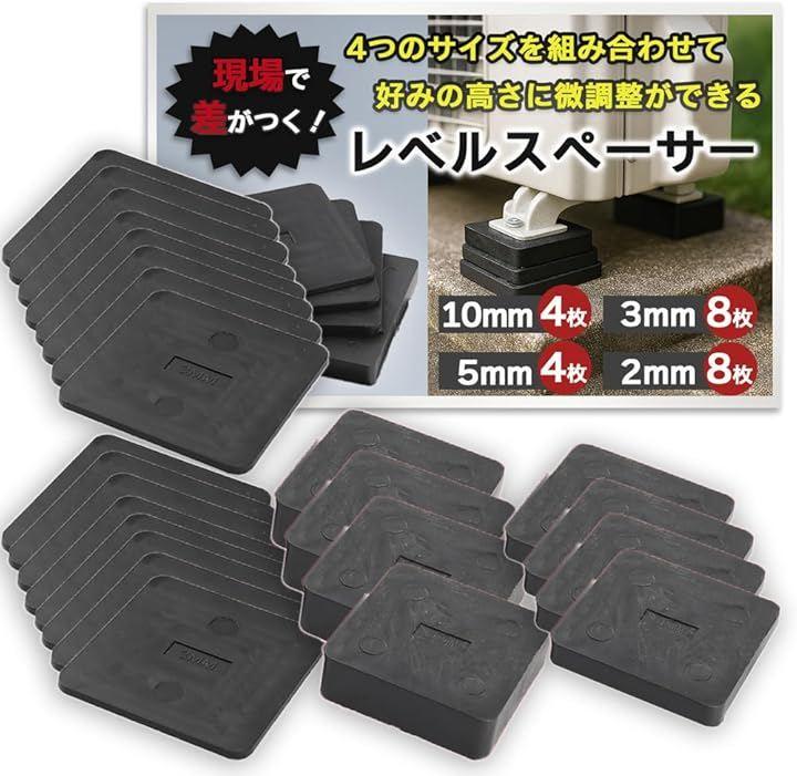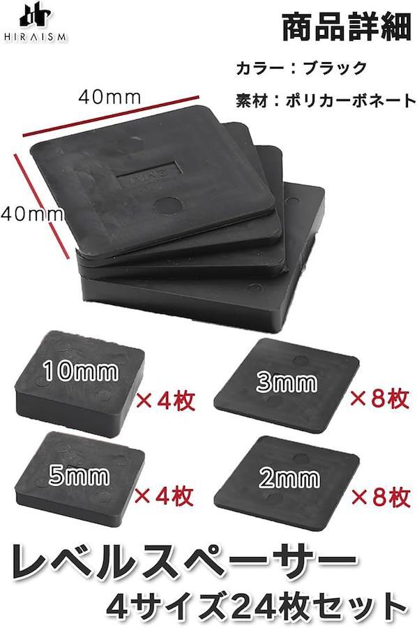 「細かな高さ調整が可能」2mm・3mm・5mm・10mmの4種類が揃っており、用途に応じて厚みを自由に組み合わせて高さ調整できるレベルスペーサーになります。