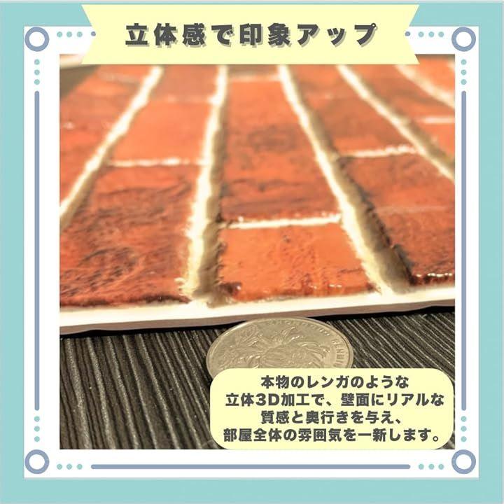 「立体感で印象アップ」本物のレンガのような立体3D加工で、壁面にリアルな質感と奥行きを与え、部屋全体の雰囲気を一新します。