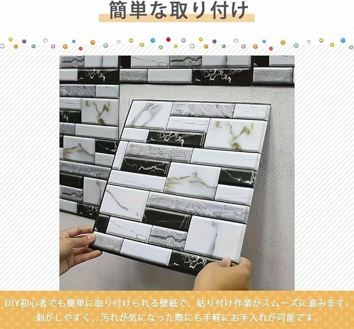 「簡単な取り付け」DIY初心者でも簡単に取り付けられる壁紙で、貼り付け作業がスムーズに進みます。