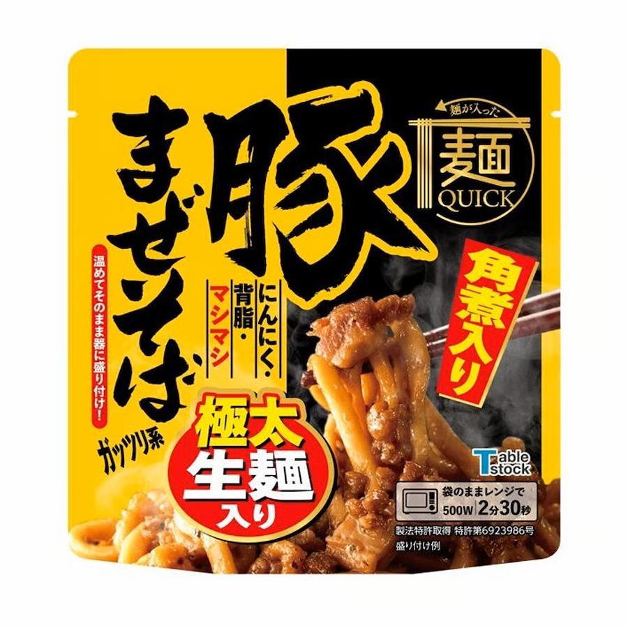 レンジで温める(500W2分30分)だけでの本格麺。美味しさを徹底的に追求し、茹でたてのようなもちもち食感を実現!さらに、常温保存できますので、ストックに便利です。角煮入り豚まぜそばは、もちもち麺とソースが絡まったリッチテイストです。レトルト麺の概念を超える美味しさをお楽しみください。