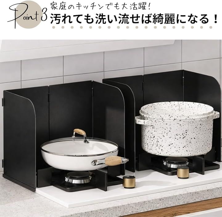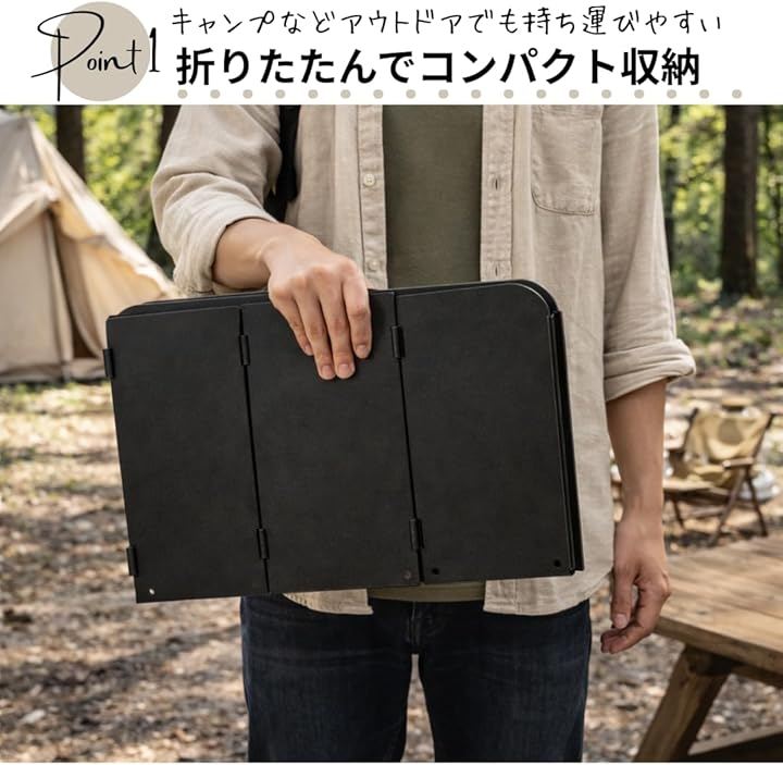 「折りたたみ式で持ち運び便利」折りたたみ式なのでコンパクトに収納でき、キャンプなどアウトドアでも持ち運びやすい油はねガードです。