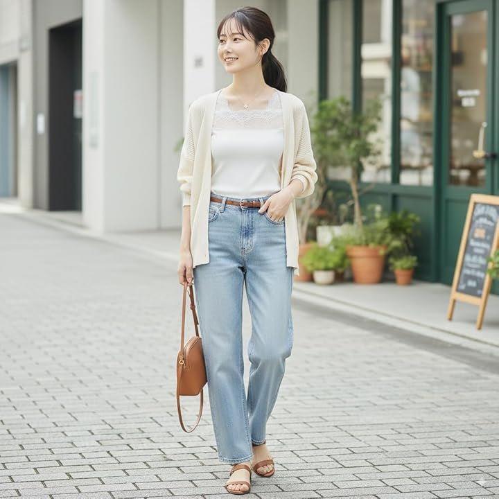 暑くなってアウターを脱いでも肌着らしくなくタンクトップ感覚で着られて1枚でかわいい。