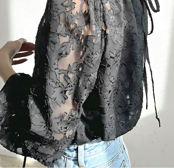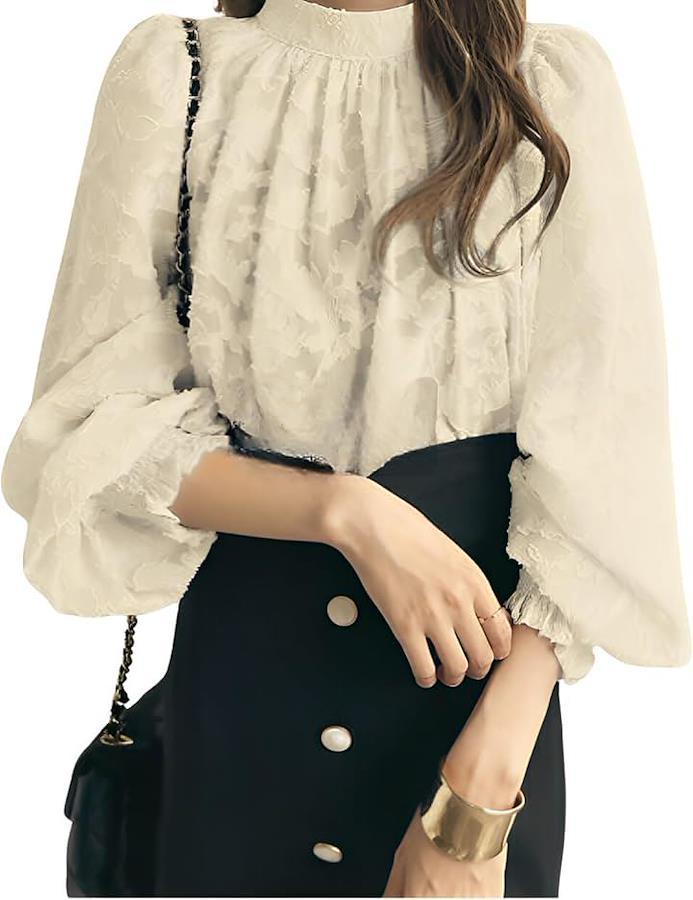 流行のシースルーxバルーンスリーブが大人かかわいいトップスをご用意しました。