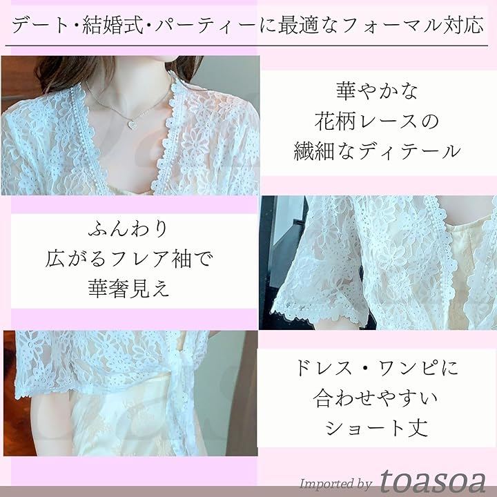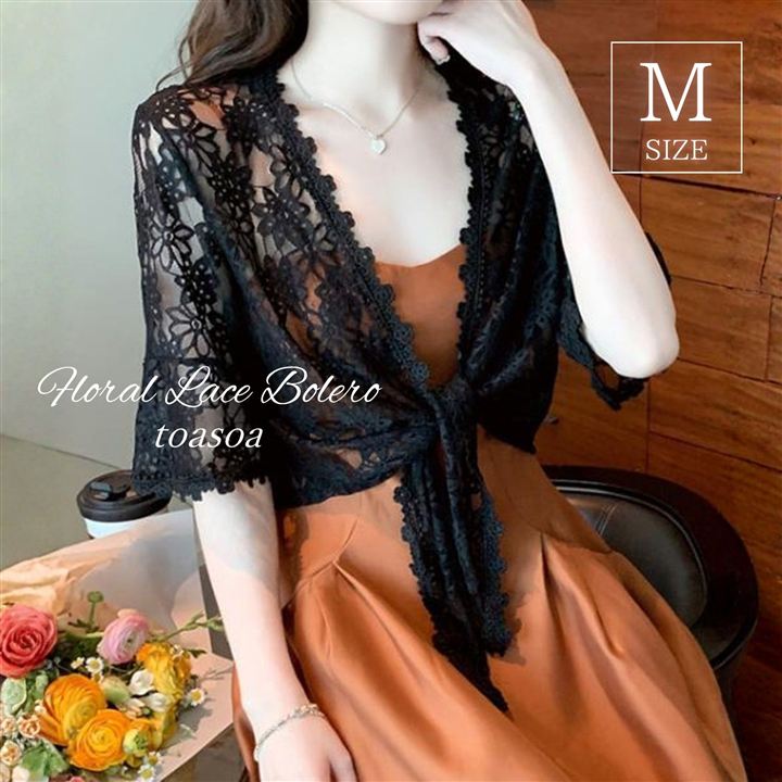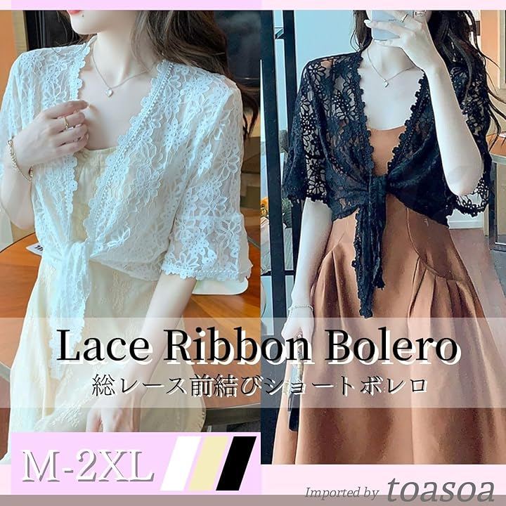 さっと羽織れる軽さが魅力の総レース リボン ボレロ。
