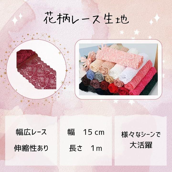 繊細な花柄デザインが美しい、幅15cmのストレッチレースです。