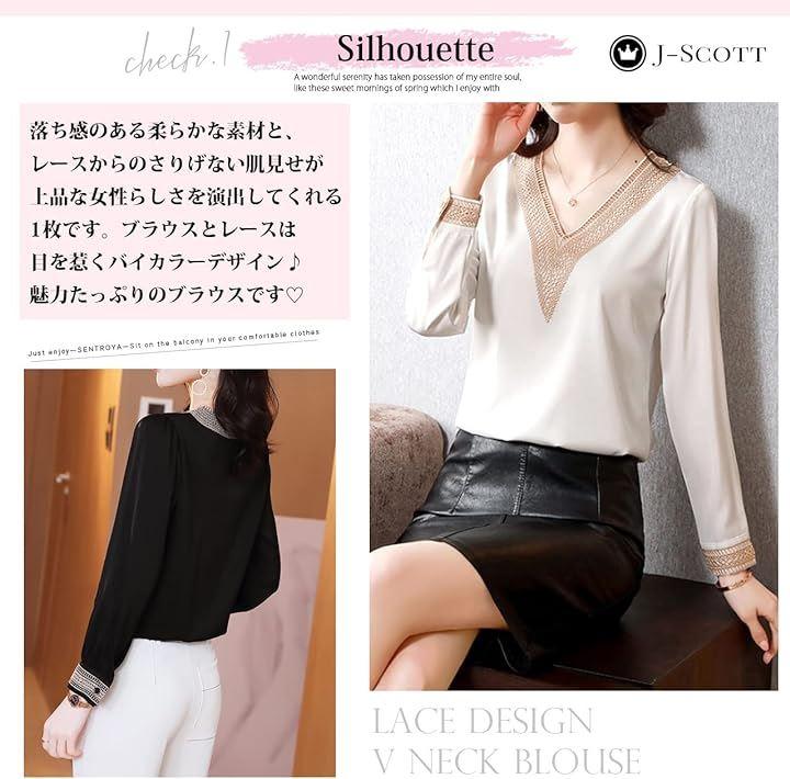 Vネックブラウスなら、首元をシャープに見せてくれ小顔効果が期待できる。