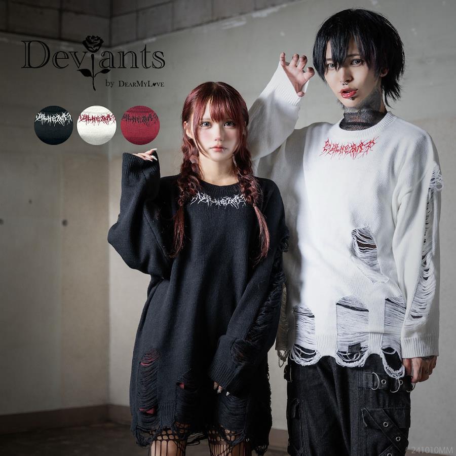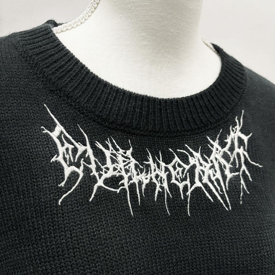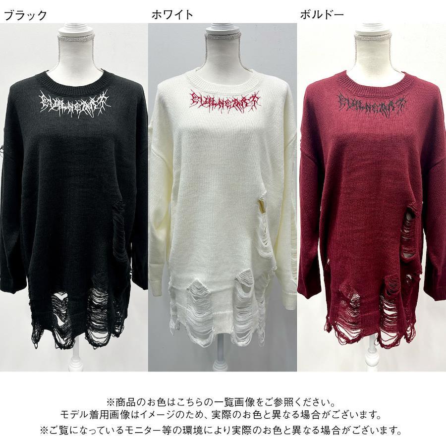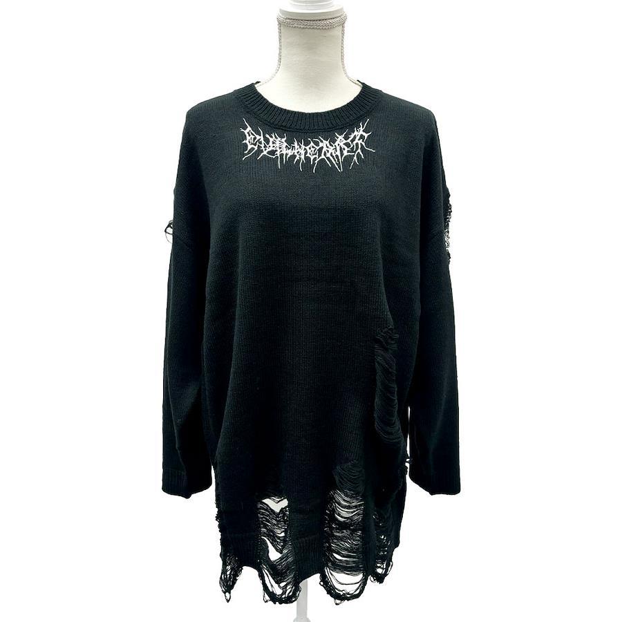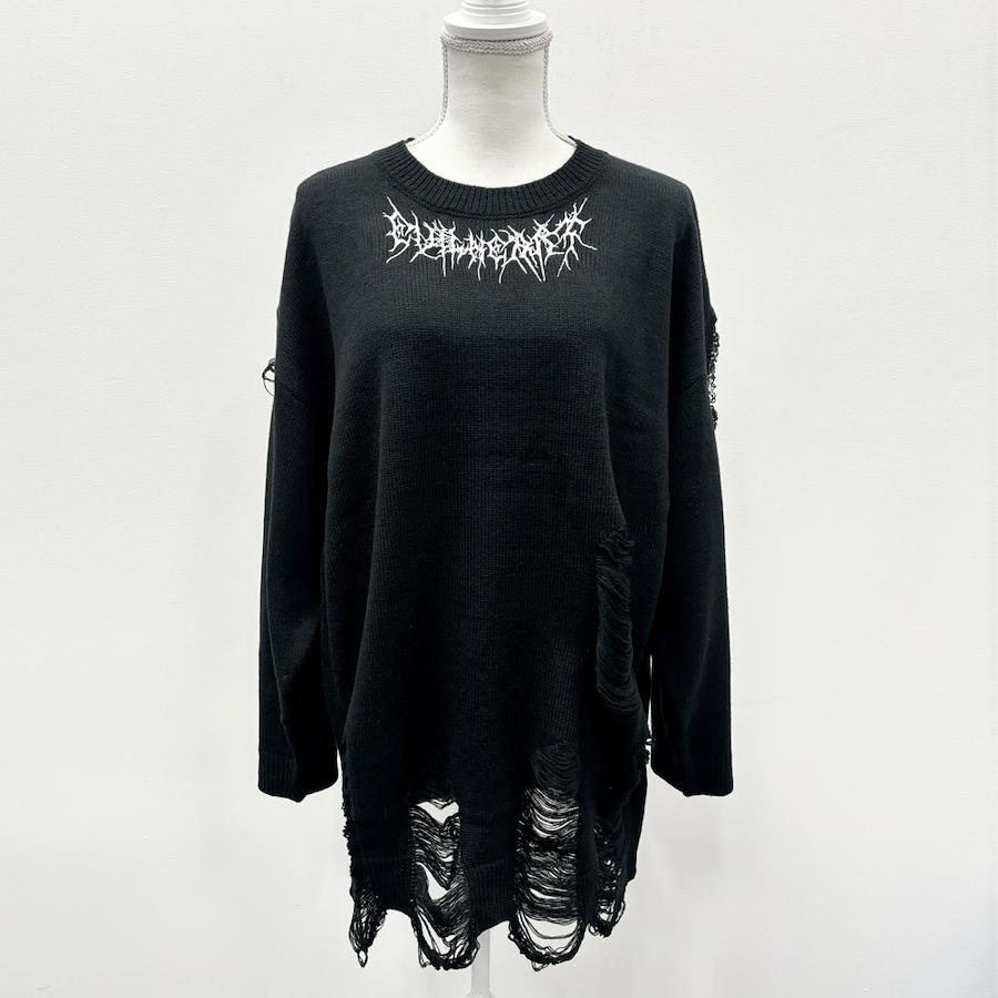 首元に刺繍入りのグランジビッグニット