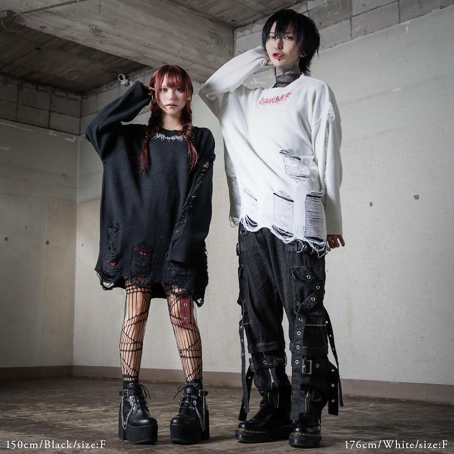 裾や袖にも集中的にダメージグランジが特徴です。