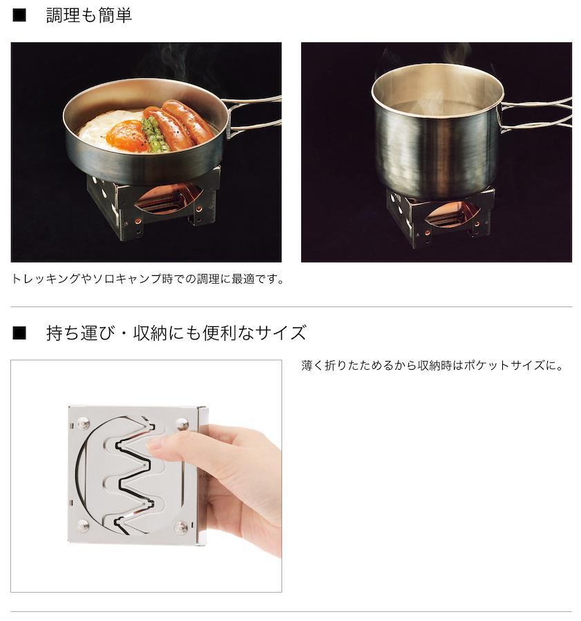 ●ポケットサイズのコンパクトコンロ●耐久性の高いステンレス製●燃料は別売の専用燃料(No.83010109)タブレット燃料をご使用ください※付属はしていません●別売専用燃料はコンロ内部に収納できます