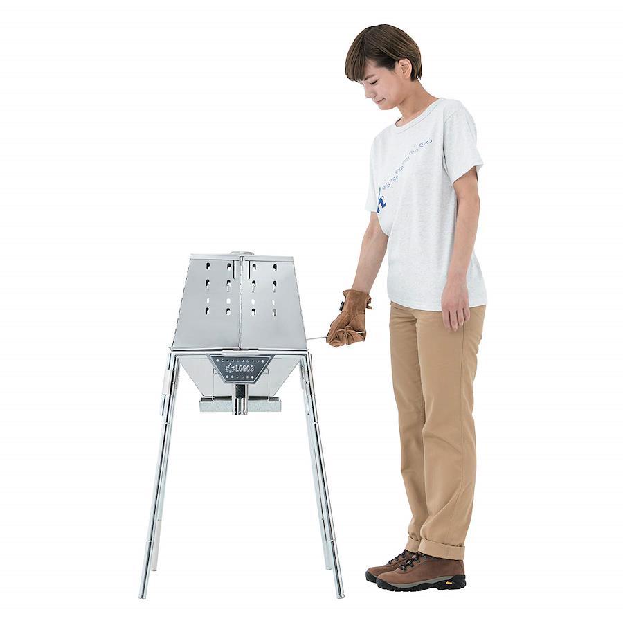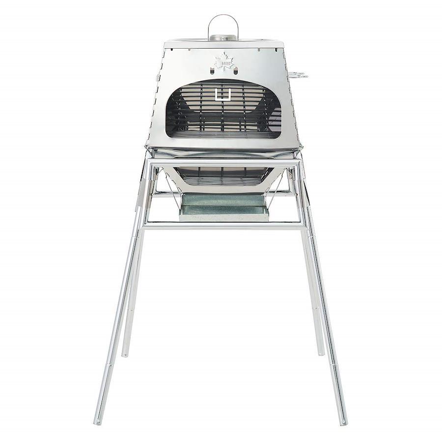 総重量:(約)10.4kgサイズ:[組立時](約)幅61×奥行57×高さ97/65cm[天 穴](約)26cm[ピザプレート](約)24.5cm[開口部(上部)](約)幅29×高さ14.5cm[開口部(下部)](約)幅26.5/19×高さ8.5cm収納サイズ:(約)幅44×奥行39×高さ17.5cm構 成:本体、ハイポジションスタンド、遮温カバー、収納バッグ主素材:ステンレス、スチール、木材