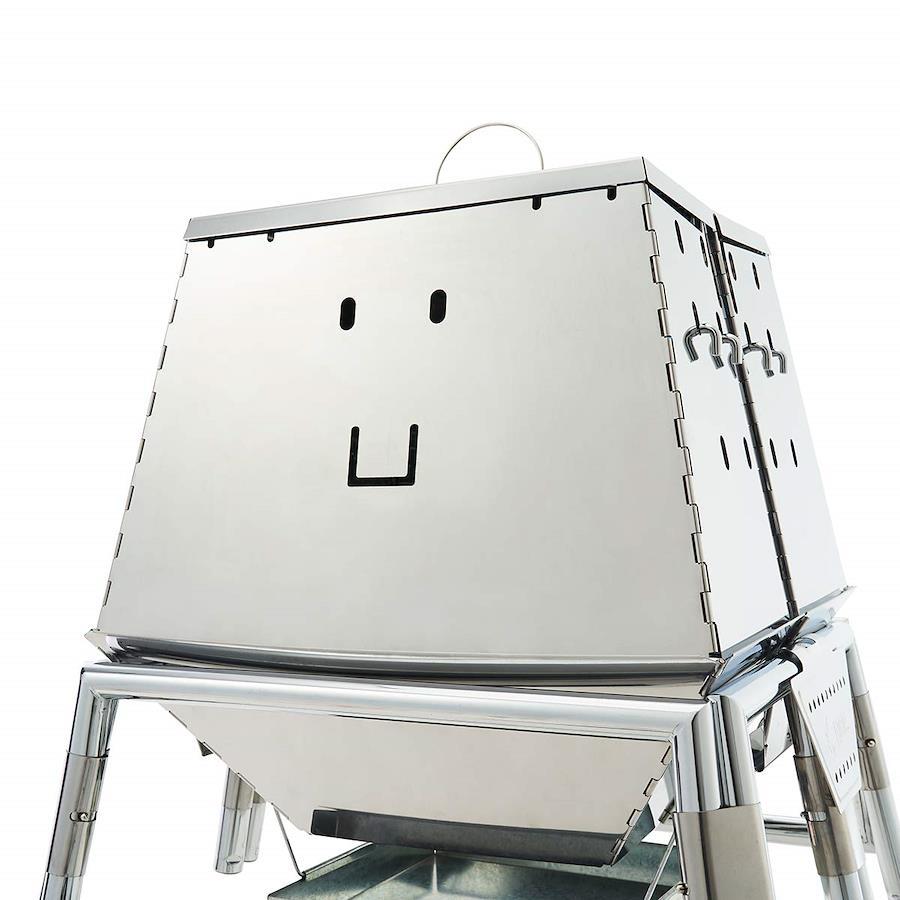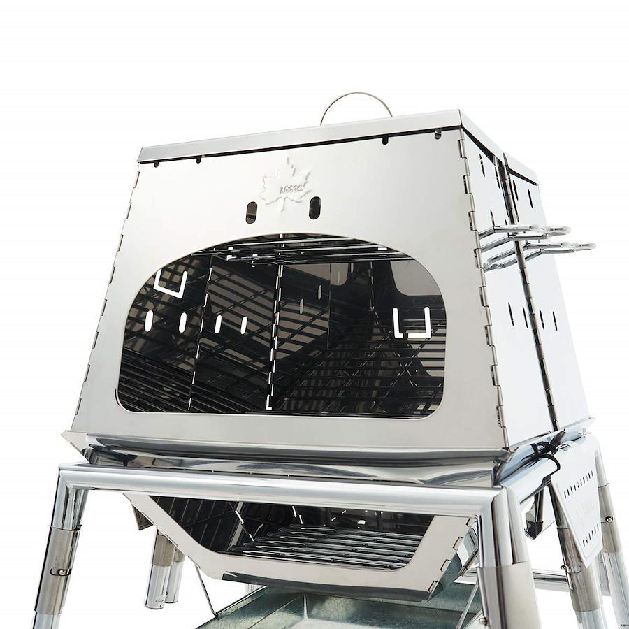 総重量:(約)10.4kg サイズ:[組立時](約)幅61×奥行57×高さ97/65cm [天穴](約)26cm [ピザプレート](約)24.5cm [開口部(上部)](約)幅29×高さ14.5cm [開口部(下部)](約)幅26.5/19×高さ8.5cm 収納サイズ:(約)幅44×奥行39×高さ17.5cm構成:本体、ハイポジションスタンド、遮温カバー、収納バッグ 主素材:ステンレス、スチール、木材本格ピザが楽しめる組立簡単KAMADO。内部温度は最大400℃以上が可能だから本格的な調理ができます。更にオーブン料理と同時に鍋料理も楽しめるKAMADOならではの構造。カレーとナン、シチューとピザ など、1台で幾つもの料理が楽しめる究極のアウトドアクッキングアイテム。ハイポジションスタンドが付属しているから目線の高さでKAMADO内が確認でき更に調理しやすくなりました。遮温カバーが付属しているので、より簡単にKAMADO内の温度を高温にすることができます。驚きの顔"Wa!"と笑顔の"Emi"のフェイスが施されたデザイン。無煙! チャコラックのセットが可能付属品:収納バッグ