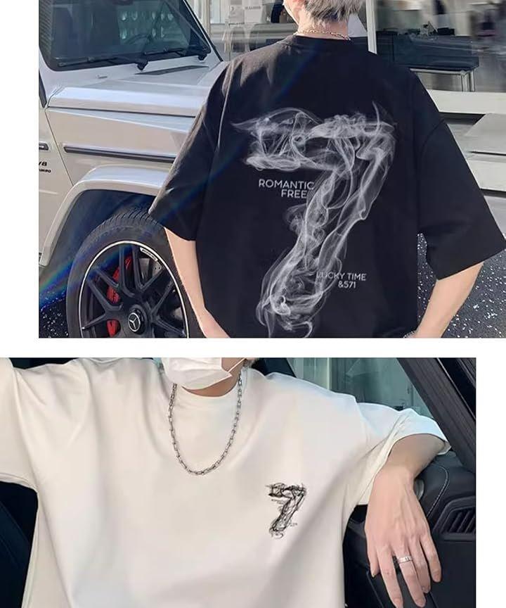 」背中に大きく施されたスモーキーな「7」のグラフィックが印象的な、存在感抜群のメンズTシャツ。