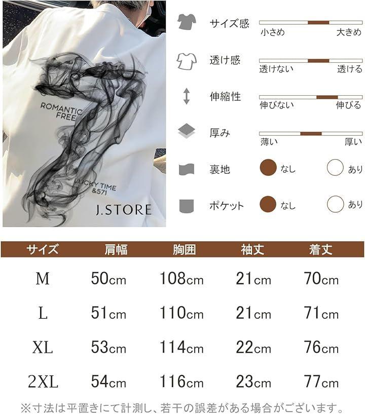 サイズ(cm):肩幅/胸囲/袖丈/着丈「M」50/108/21/70「L」51/110/21/71「XL」53/114/22/76「2XL」54/116/23/77 素材:綿100%