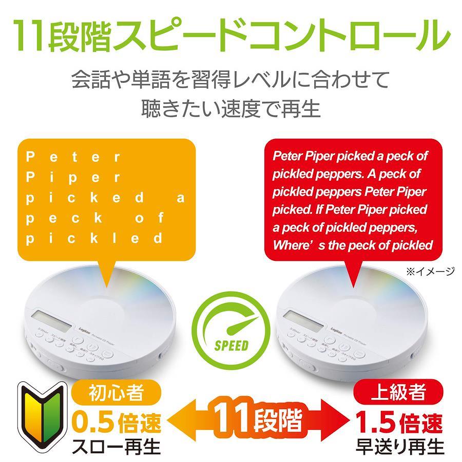 ■音声のスロー・早送り再生ができるスピードコントロール機能を搭載。再生スピードを0.5~1.5倍速まで、11段階で調整が可能。聞き取りにくい単語やフレーズをスローで再生したり、早送り再生で英会話を聴き流すなど、お好みのレベルに合わせて再生速度を変えられるので、語学学習が捗ります