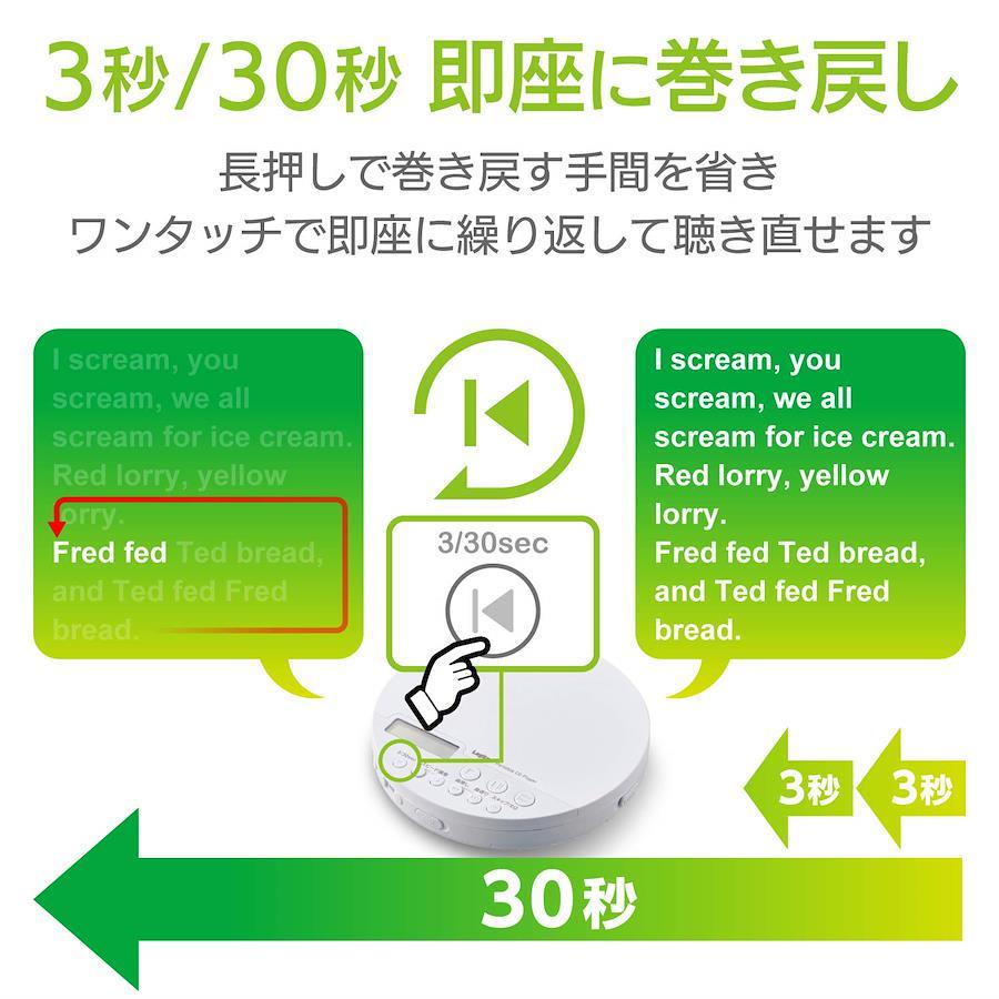 ■さらに、語学学習に便利な3秒・30秒戻し機能を搭載。聴き逃した単語やフレーズをもう一度聴きたい!と思ったらボタンを押すだけで、直前の単語やフレーズを何度でも繰り返し聴き直せます。一定の秒数を巻き戻せるので、巻き戻しすぎてしまう煩わしさを解消できます
