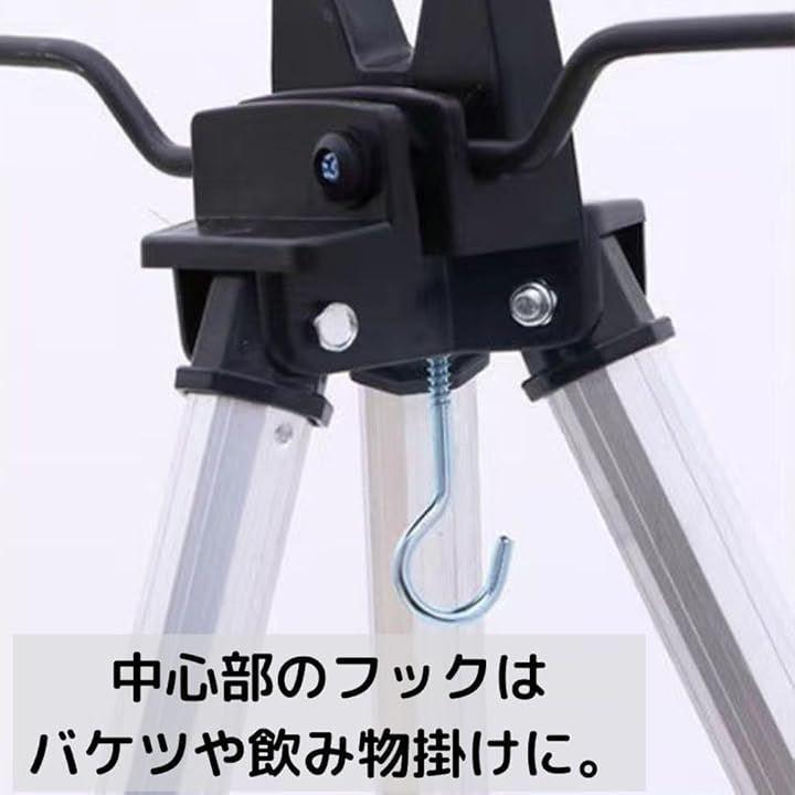 三脚スタイルで安定感抜群、釣り場での使用に最適です。