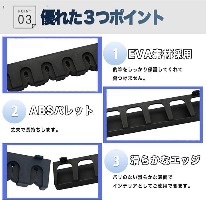 「耐久性と安全性」高品質な素材で作られたこの壁掛けラックは、釣り竿をしっかりと保持し、安全に収納します。