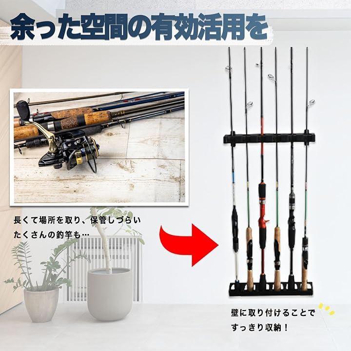 「ロッドを美しくディスプレイ」釣り竿壁掛けホルダーは、6本の竿を美しくディスプレイするための理想的なアイテムです。