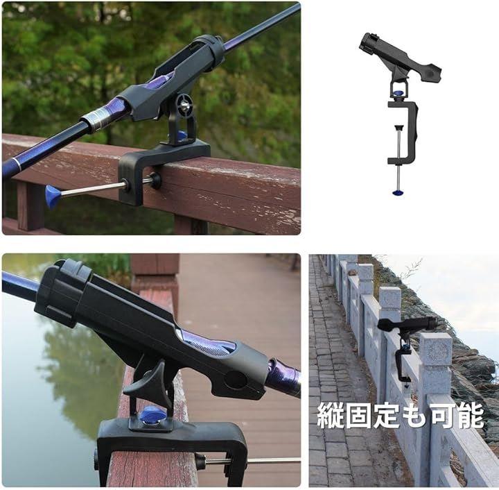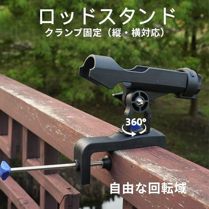 「回転自由」360度角度調整可能で、クランプ開口部が大きいので、様々な釣場に適し、縦付け、横付けが切り替え可能なので、お好きな位置に、角度が自由自在に調整できます。